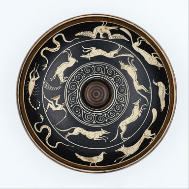 Attic Black'The Hare hunt' White-on-Black libation bowl