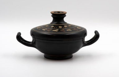 €945,00| /From the THETIS' cabinet Collection (one-of-a-kind) A black glazed pyxis comprising two items of the 4rth cent BCE. The lid based on a Hellenistic ...