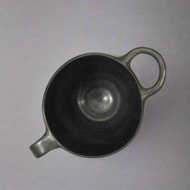 View full detailsBlack glazed mug (kypello) ca. 475-450 BCE Dimensions H: 10cm, max L: 12cm, rim D: 10cm