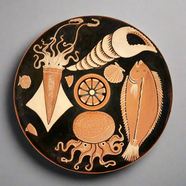 Reproduction of an Apulian Fish Plate by Darius Painter Workshop This exquisite fish plate is a faithful reproduction of a red-figure work from Sou...