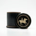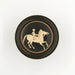 A refined cylindrical pyxis, a genuinely executed form based on similar black-glazed utensils of Classical Athenian pottery. The vessel is coated in a deep black glaze, while its lid bears a white rider figure applied in the so-called Six Technique — a rare decorative method seen in a small group of Attic wares at the end of the 6th century BC.